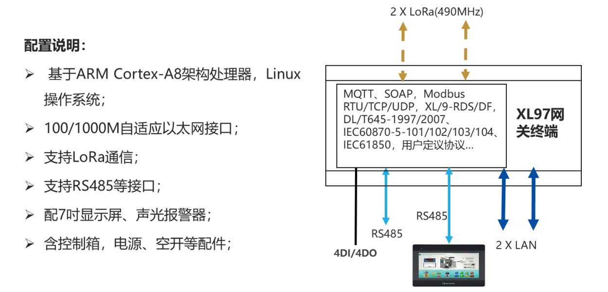XL971E67網(wǎng)關(guān)終端,是集成XL95物聯(lián)網(wǎng)關(guān),7吋顯示屏、聲光報(bào)警器,及電源、開(kāi)關(guān)、控制箱等等的物聯(lián)網(wǎng)接收終端,讓客戶安裝使用更加方便。