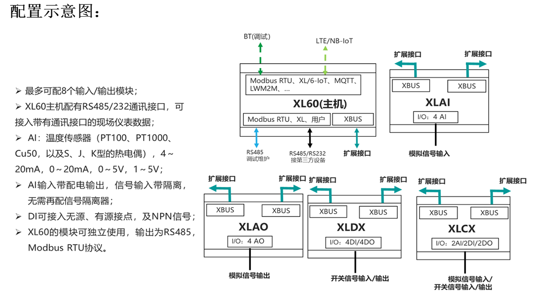XL60無線采集裝置為模塊化設計,一臺采集裝置,由一個主機模塊,和任意不同數(shù)量的輸入、輸出模塊組成。