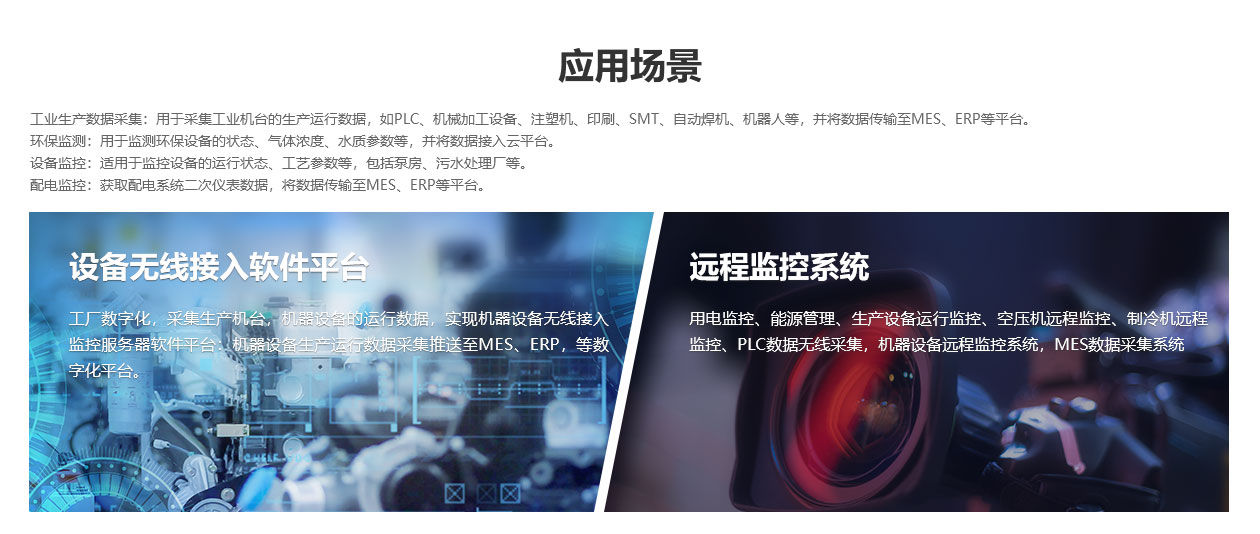 1、工廠危險源監(jiān)控,無線讀取有毒害氣體、溫度等傳感器的數(shù)據(jù)轉(zhuǎn)發(fā)到平臺,同時將數(shù)據(jù)接入現(xiàn)場監(jiān)控終端,現(xiàn)場也能實時監(jiān)控;