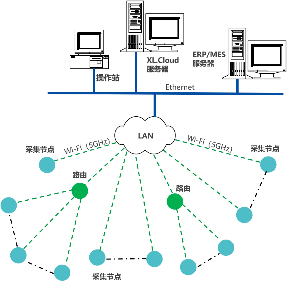 用戶可選第三方生產(chǎn)管控平臺,直接從XL90網(wǎng)關(guān),或采集節(jié)點獲取數(shù)據(jù)