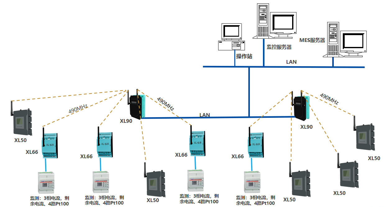 4、所有采集的數(shù)據(jù)通過無線Lora上傳給物聯(lián)網(wǎng)關XL90,然后網(wǎng)關通過以太網(wǎng)或者WIFI(5G)把數(shù)據(jù)傳給MES系統(tǒng)。