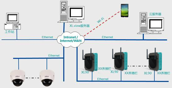 智慧養(yǎng)殖環(huán)境監(jiān)控系統(tǒng)基于傳統(tǒng)服務(wù)器或云服務(wù)器平臺和XL.SN智能傳感網(wǎng)絡(luò)技術(shù)(Lora、433M、4G、NB-IOT等),采用物聯(lián)網(wǎng)關(guān)、智能環(huán)境監(jiān)測終端、無線采集裝置、智能傳感器等,實現(xiàn)對空氣溫濕度、光照度、CO?濃度、硫化氫、氨氣、溶氧量、PH值、水溫、銨氮等養(yǎng)殖場環(huán)境參數(shù)的實時采集、無線傳輸、監(jiān)測和控制。