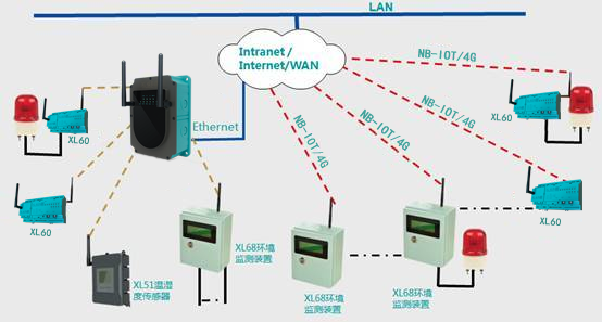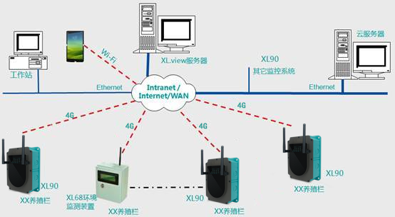 XL68智能環(huán)境監(jiān)測終端(裝置),采集空氣溫濕度、H?S、NH?、O?、CO?等等氣體濃度,光照、差壓等等信號;簡單應(yīng)用中選擇XL51溫濕度傳感器采集空氣溫濕度;XL60無線采集裝置控制養(yǎng)殖欄內(nèi)的參數(shù),起動風機、加熱裝置、濕簾、照明,起動聲光報警器,采集用水量、用電量、水壓等等用戶關(guān)注的參數(shù)。