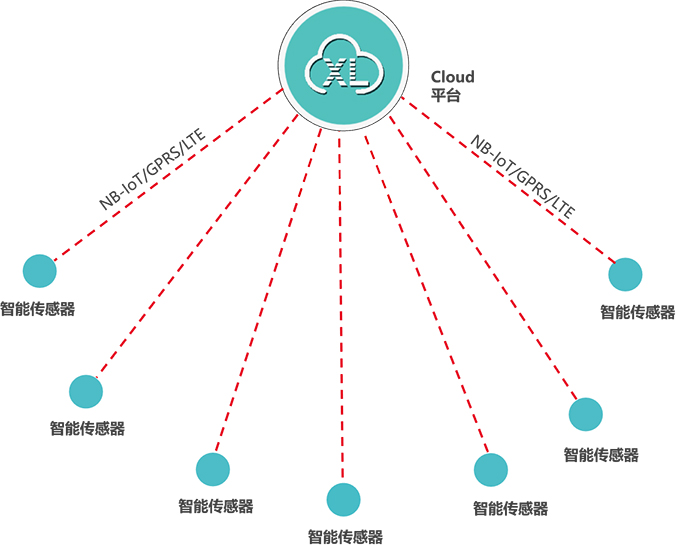 智能傳感器,通過NB/GPRS/LTE,推送數(shù)據(jù)至云端平臺