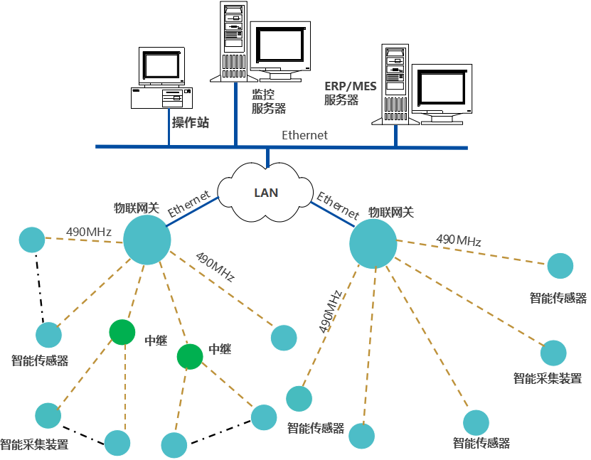 智能終端,無線讀取智能傳感器的數(shù)據(jù),進(jìn)行協(xié)議轉(zhuǎn)換、處理、保存、就地顯示,通過有線,或無線的方式,推送數(shù)據(jù)至工廠數(shù)字化管理平臺;
