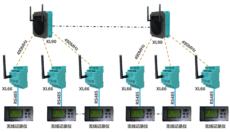 每個(gè)監(jiān)測(cè)點(diǎn)配置1臺(tái)XL66智能轉(zhuǎn)換器,從無(wú)線記錄儀讀取蒸汽流量數(shù)據(jù)上傳至XL90物聯(lián)網(wǎng)關(guān);