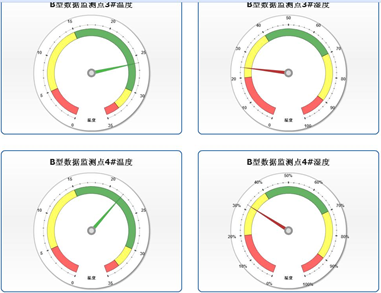 (6)監(jiān)測軟件采用工業(yè)組態(tài)開發(fā),具有性能穩(wěn)定、功能豐富、組態(tài)靈活,擴(kuò)展方便等諸多優(yōu)點(diǎn)。如可以根據(jù)傳感器分布提供軟件界面,在界面上區(qū)分傳感器位置、布局、每個(gè)監(jiān)測點(diǎn)位置等按照實(shí)際布局安排,確保監(jiān)測界面的生動(dòng)形象。