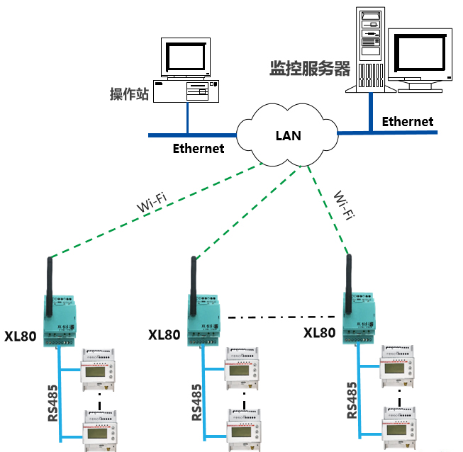2、XL80智能主機(jī),通過Wi-Fi接入LAN網(wǎng)絡(luò),支持MQTT、SOAP、API、Modbus、XL/9-IoT等等多種通信協(xié)議,接入EMS、MES、ERP等系統(tǒng),不支持協(xié)議對接的,可直接將數(shù)據(jù)寫入數(shù)據(jù)庫;