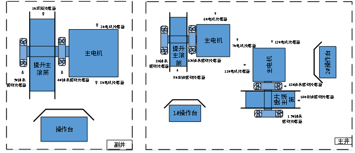 在主、副井提升機(jī)電機(jī)、減速箱本體上,按相關(guān)設(shè)備的技術(shù)要設(shè)置振動(dòng)監(jiān)測(cè)點(diǎn);