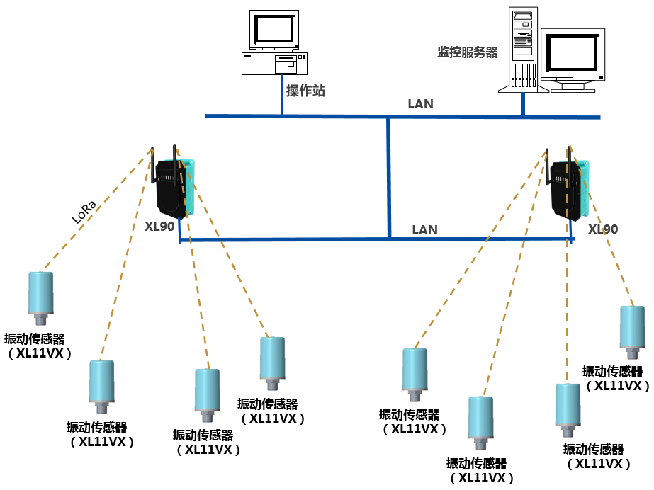 選擇XL90物聯(lián)網(wǎng)關(guān),讀取振動(dòng)傳感器的數(shù)據(jù),通過(guò)局域網(wǎng)上傳數(shù)據(jù)至監(jiān)控服務(wù)器;