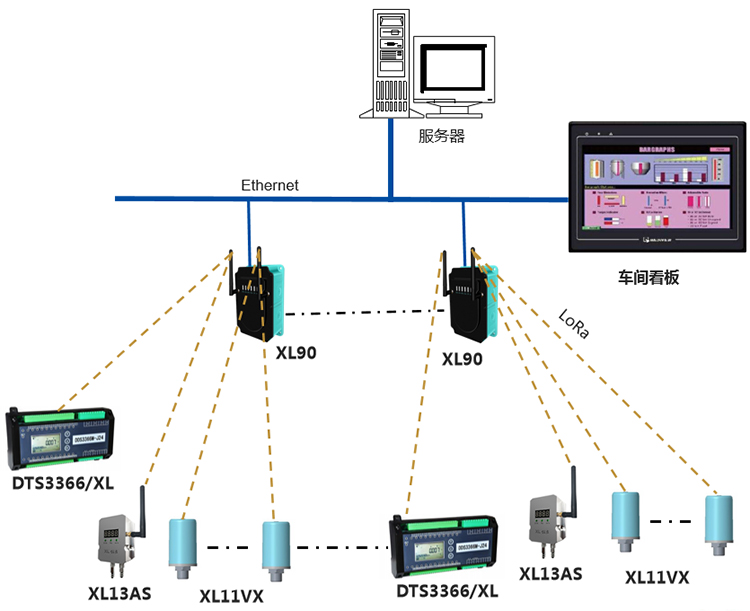 基于XIoT技術的回流爐運行狀態(tài)數(shù)據(jù)集系統(tǒng),選擇DTSD3366/XL電力監(jiān)測儀表,XL13AS無線風速傳感器、XL11VX無線振動傳感器,采集回流爐運行數(shù)據(jù),無線上傳數(shù)據(jù)至XL90物聯(lián)網關: