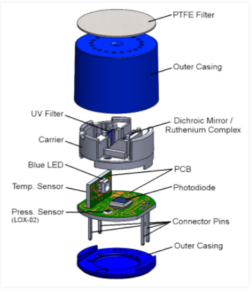 LOX-02熒光氧傳感器的一個(gè)關(guān)鍵優(yōu)勢(shì)是,該技術(shù)不含鉛成分,暴露在氧氣中不會(huì)耗盡熒光染料。