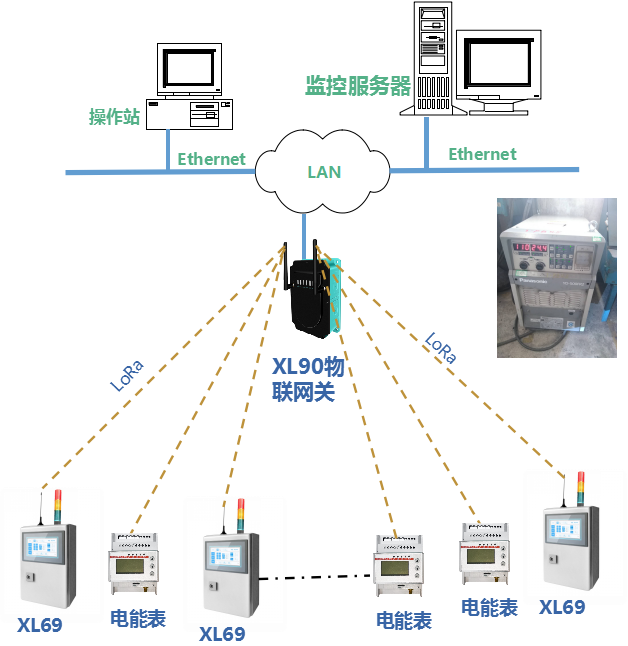 XL69無(wú)線采集終端安裝、固定在電焊機(jī)上;配互感器等信號(hào)采集、輸入模塊,參數(shù)按焊機(jī)技術(shù)參數(shù)配。