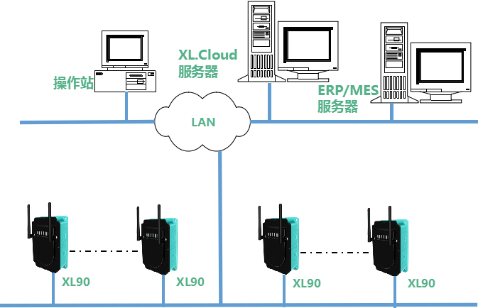 平臺(tái)系統(tǒng)的通信網(wǎng)絡(luò),由XL90物聯(lián)網(wǎng)關(guān),企業(yè)局域網(wǎng),和監(jiān)控服務(wù)器構(gòu)成。