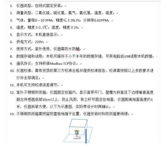 戶外箱體配置:建議選擇1套玻璃鋼百葉箱,安裝XL58環(huán)境監(jiān)測終端及傳感器探頭。建議選擇尺寸足夠的標準產(chǎn)品。