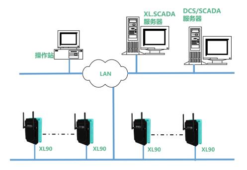 平臺通信網(wǎng)絡,由XL90物聯(lián)網(wǎng)關,企業(yè)局域網(wǎng),和監(jiān)控服務器構成。