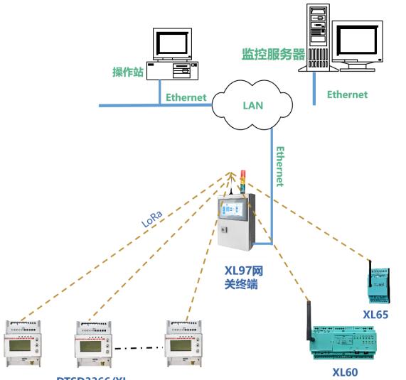 XL65無線上傳數(shù)據(jù)至現(xiàn)場監(jiān)控終端;或上傳至XL90物聯(lián)網(wǎng)關(guān)。