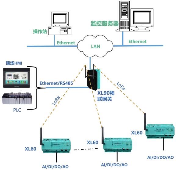 XL90或XL95物聯(lián)網(wǎng)關(guān)作為無線接收端,進(jìn)行協(xié)議轉(zhuǎn)換,數(shù)據(jù)轉(zhuǎn)發(fā)。