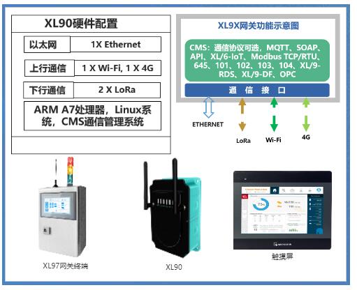 XL90物聯(lián)網(wǎng)關(guān):支持兩路LoRa通信,可以分別配置成對(duì)上或?qū)ο峦ㄐ?;網(wǎng)關(guān)支持Ethernet、4g、Wi-Fi通信,可同時(shí)向多個(gè)系統(tǒng)轉(zhuǎn)發(fā)數(shù)據(jù)。