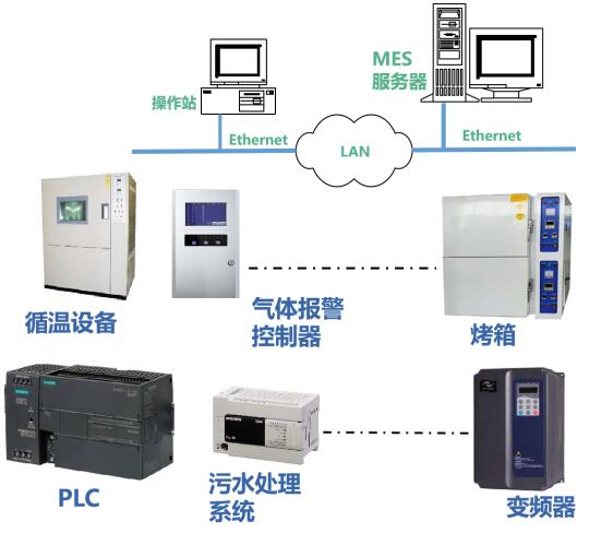 工廠的各種類生產(chǎn)設(shè)備、生產(chǎn)系統(tǒng)及監(jiān)控系統(tǒng),需要通過廠內(nèi)LAN接入MES。