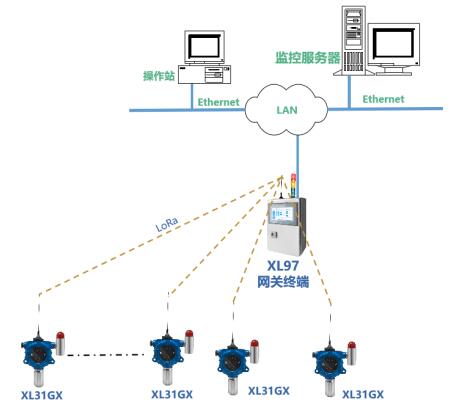增加現(xiàn)場集中監(jiān)視,可配XL97網(wǎng)關終端,讀取區(qū)域內(nèi)氣體傳感器數(shù)據(jù),分析處理、顯示、報警,并轉發(fā)至監(jiān)控中心服務器。