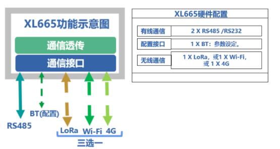 采用XL665無線轉(zhuǎn)化器,將一路RS485的輸出,轉(zhuǎn)換成一路RS485輸出和一路LoRa無線輸出,可同時與兩個系統(tǒng)或設(shè)備通信傳輸數(shù)據(jù)。