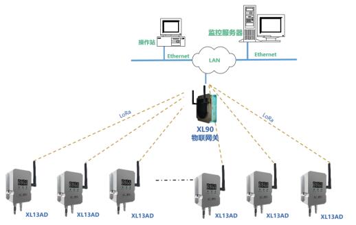 網絡層:XL13AD差壓傳感器通過LoRa無線傳輸數據至XL906物聯網關或XL97網關終端,網關可選Ethernet、Wi-Fi、4G等多種方式將差壓數據傳輸至監(jiān)控平臺。