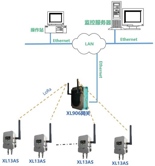 根據(jù)現(xiàn)場實際情況,部署XL906物聯(lián)網(wǎng)關(guān),XL13AS無線風(fēng)管風(fēng)速傳感器通過LoRa無線傳輸數(shù)據(jù)至XL906物聯(lián)網(wǎng)關(guān),網(wǎng)關(guān)可選Ethernet、Wi-Fi、4G等多種方式將風(fēng)速數(shù)據(jù)傳輸至監(jiān)控平臺。