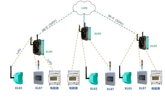 平臺系統(tǒng)的通信網(wǎng)絡(luò),由XL906物聯(lián)網(wǎng)關(guān)、企業(yè)局域網(wǎng)和監(jiān)控服務(wù)器構(gòu)成,物聯(lián)網(wǎng)關(guān)可同時將數(shù)據(jù)推送至多個應(yīng)用軟件平臺。