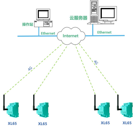 若距離偏遠(yuǎn)或設(shè)備較為離散,XL65無線采集器可采用4G通信方式,直接將數(shù)據(jù)接入云平臺。