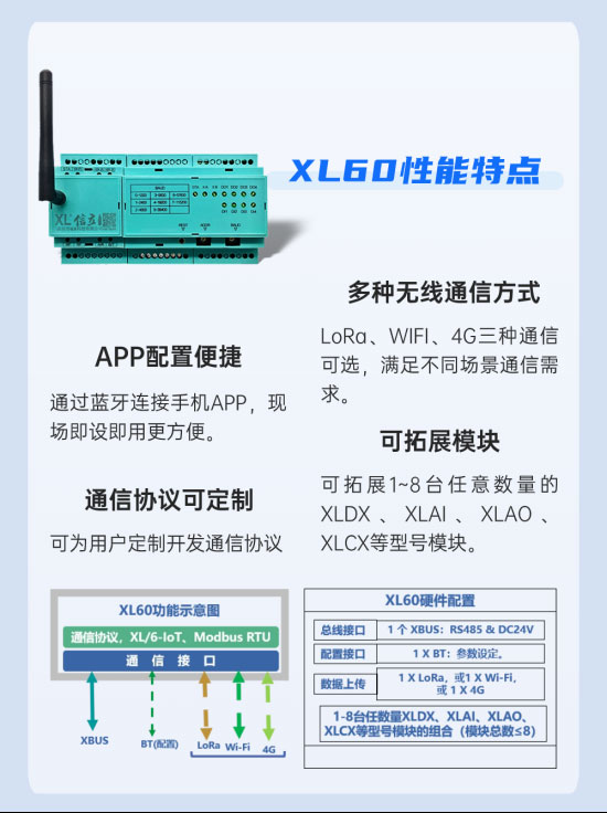 選擇 XL60 無(wú)線采集裝置 ,搭配 I/O 模塊,接收開(kāi)關(guān)量信號(hào)和輸出開(kāi)關(guān)量信號(hào)。