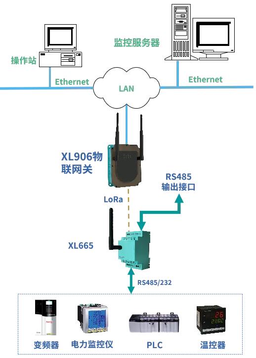 2、經(jīng)由XL665無(wú)線轉(zhuǎn)換器輸出的LoRa信號(hào),可上傳至物聯(lián)網(wǎng)關(guān),接入監(jiān)控軟件平臺(tái);