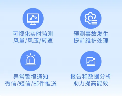 提高生產(chǎn)效率: 通過數(shù)據(jù)分析和優(yōu)化,調(diào)整離心風(fēng)機(jī)的運行參數(shù),提高設(shè)備的效率和性能,從而提高生產(chǎn)效率。