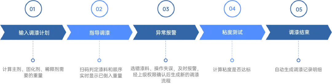 自動(dòng)匹配調(diào)漆工藝,生成各原料配比,指導(dǎo)調(diào)漆操作;