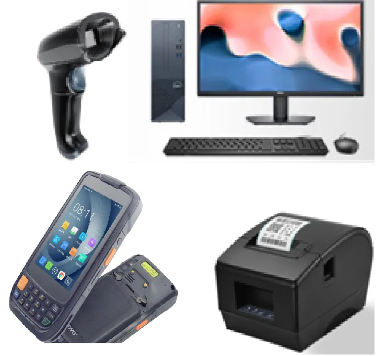 出入庫(kù)終端由電腦、標(biāo)簽打印機(jī)、掃描槍及掌上PDA組成。